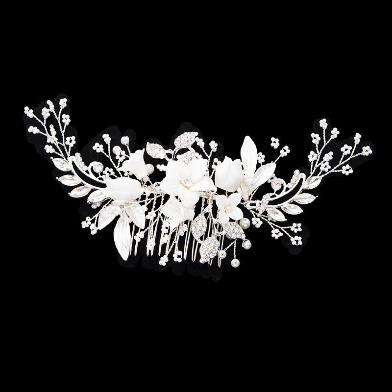 Bridal Headwear Accessories Ceramic Flower Hair Comb
